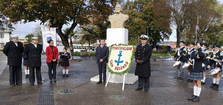 San Rosendo, 17 de mayo de 2019; Con ofrenda floral en el busto del Capitán Arturo Prat y posterior acto en el que autoridades locales y comunidad educativa conmemoraron esta fecha.