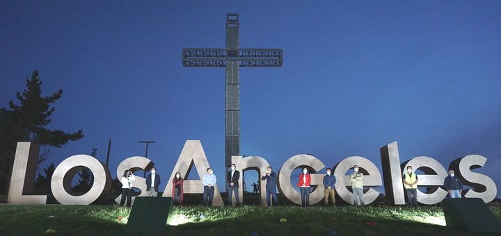 Los Ángeles, 29 de enero de 2021; Cada letra que compone el nombre de Los Ángeles fue construida 100% de madera; cada una pesa alrededor de 2 mil kilos; la estructura total instalada en el acceso norte de la ciudad es de 27 metros de largo y 4 metros de alto; están rodeadas de áreas verdes y todas las noches a partir de esta semana se iluminaran al más puro estilo hollywoodense.