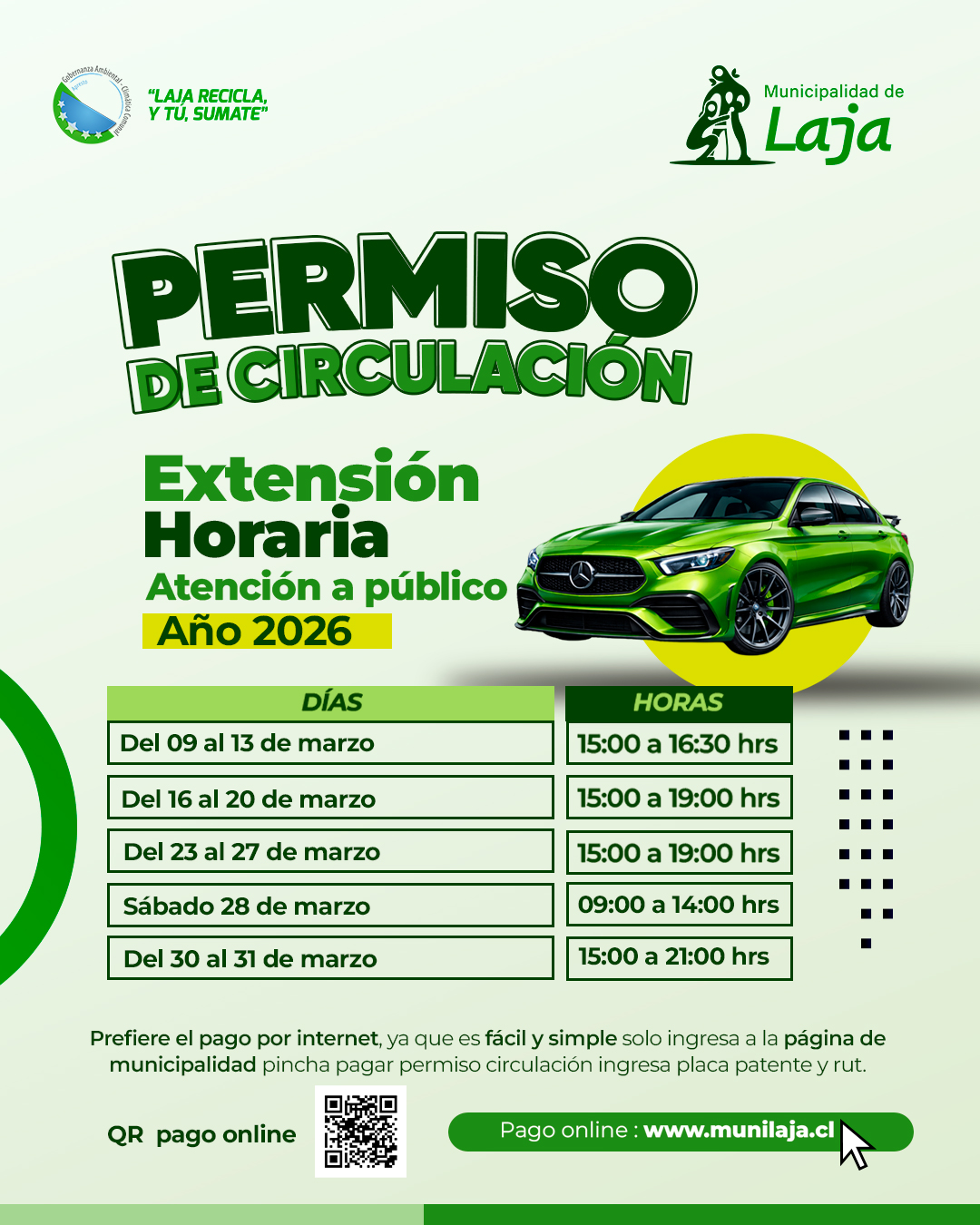 Municipalidad de Laja anuncia extensión horaria para pago del Permiso de Circulación 2026